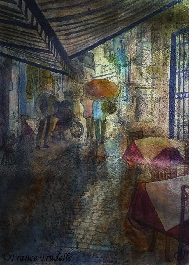 VENDUE – GIORNO DI PIOGGIA A NAPOLI – 2016 – Tech. mixtes sur papier artisanal amalfitain – 12 » x 15,5 » – 200 $ – Photo: André-Guy Robert