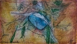 ESQUISSE POIDS PLUME / SKETCH FEATHER WEIGHT – 2015 – techniques mixtes sur carton – 7 x 11 po. – 50 $ – Photo: André-Guy Robert